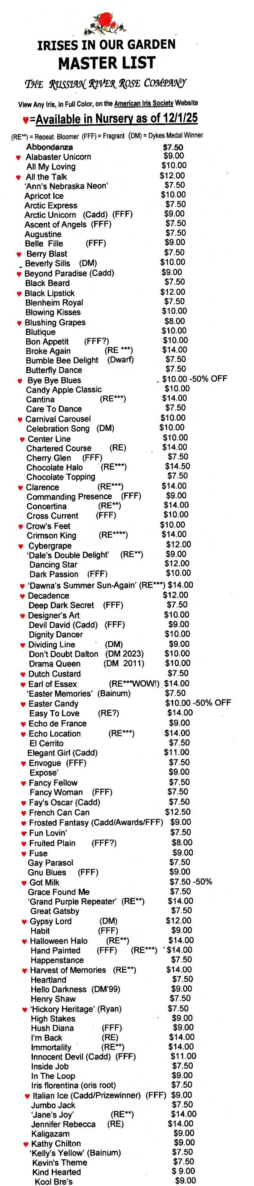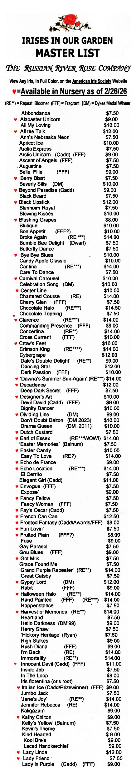 All Irises Master List